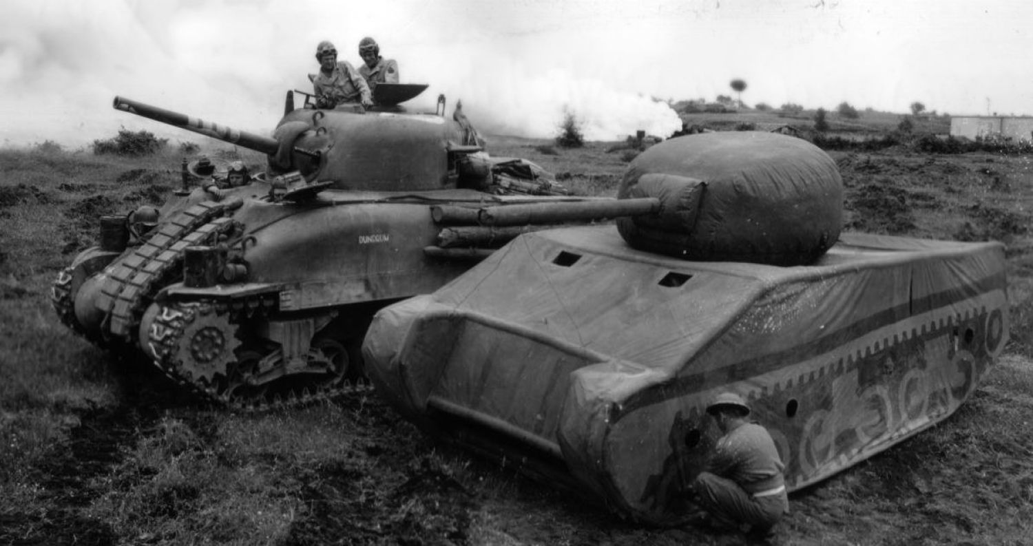 Dans les champs, les Alliés installent de faux chars (en carton ou gonflables), des maquettes d’avions, de faux dépôts de munitions, et poussent le détail jusqu’à laisser des traces de chenilles de blindés dans la boue. De fausses communications radio sont diffusées en continu pour simuler l’activité d’une armée en mouvement. Les avions de reconnaissance allemands, survolant la région, confirment ce qu’ils croient voir : une armée colossale se concentre en face de Calais et est prête à traverser la Manche…